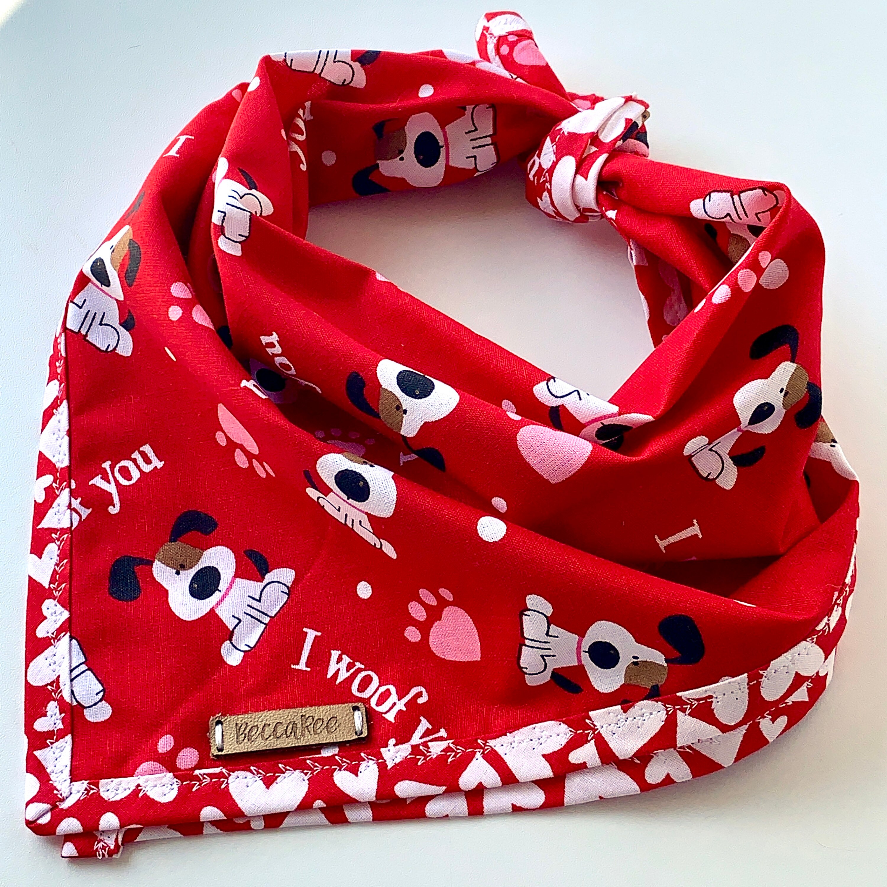 I am happy to say that I have figured out a way to make a dog bandana for your pet that will last. Each bandana is hand cut and the bias tape that is sewn around the edge is hand made by me! I put a ton of love and care into each of these unique cotton bandanas.