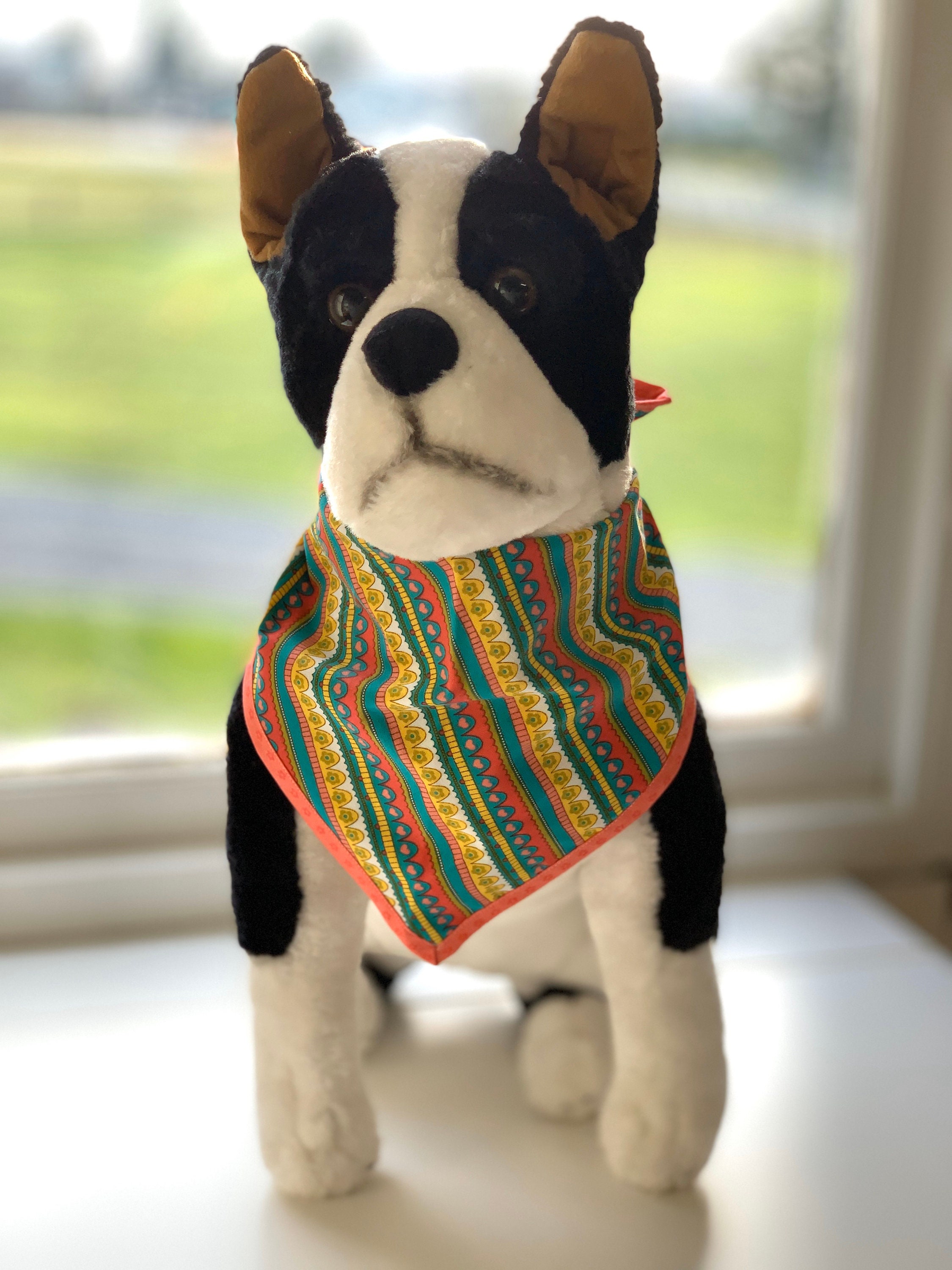Are you looking for that perfect gift for you pet? I was too, and I couldn't find the quality that would go the distance. As an owner of a large breed dog, who drools ALOT, I wanted something that would stand the test of time, and look good too. I ordered a dog bandana online, and I could see that the surged edge just wasn't going to do it for me or for Hubert. I had just paid 20 dollars for a piece of cotton fabric with a surged edge.