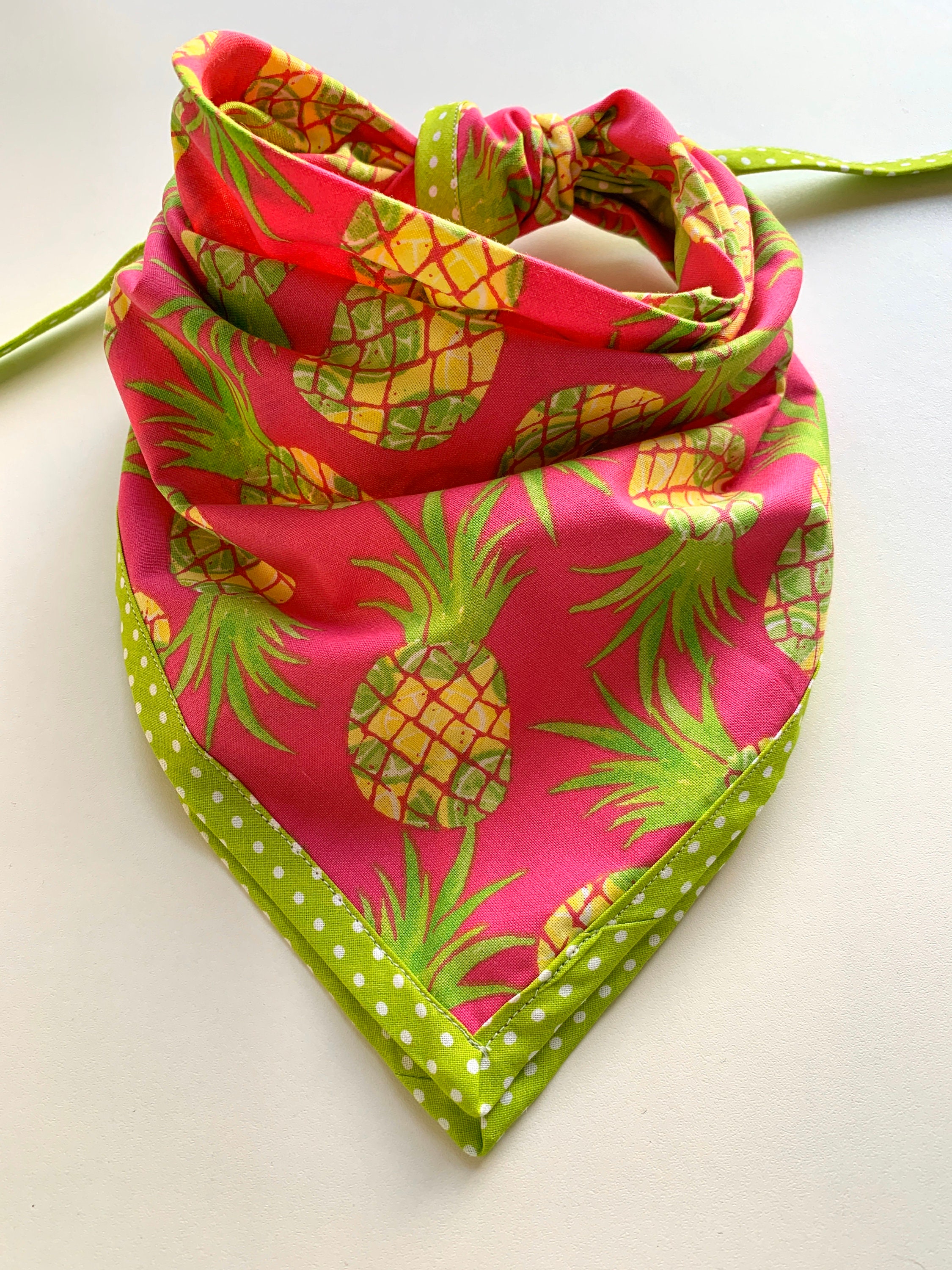 I am happy to say that I have figured out a way to make a dog bandana for your pet that will last. Each bandana is hand cut and the bias tape that is sewn around the edge is hand made by me! I put a ton of love and care into each of these unique cotton bandanas.