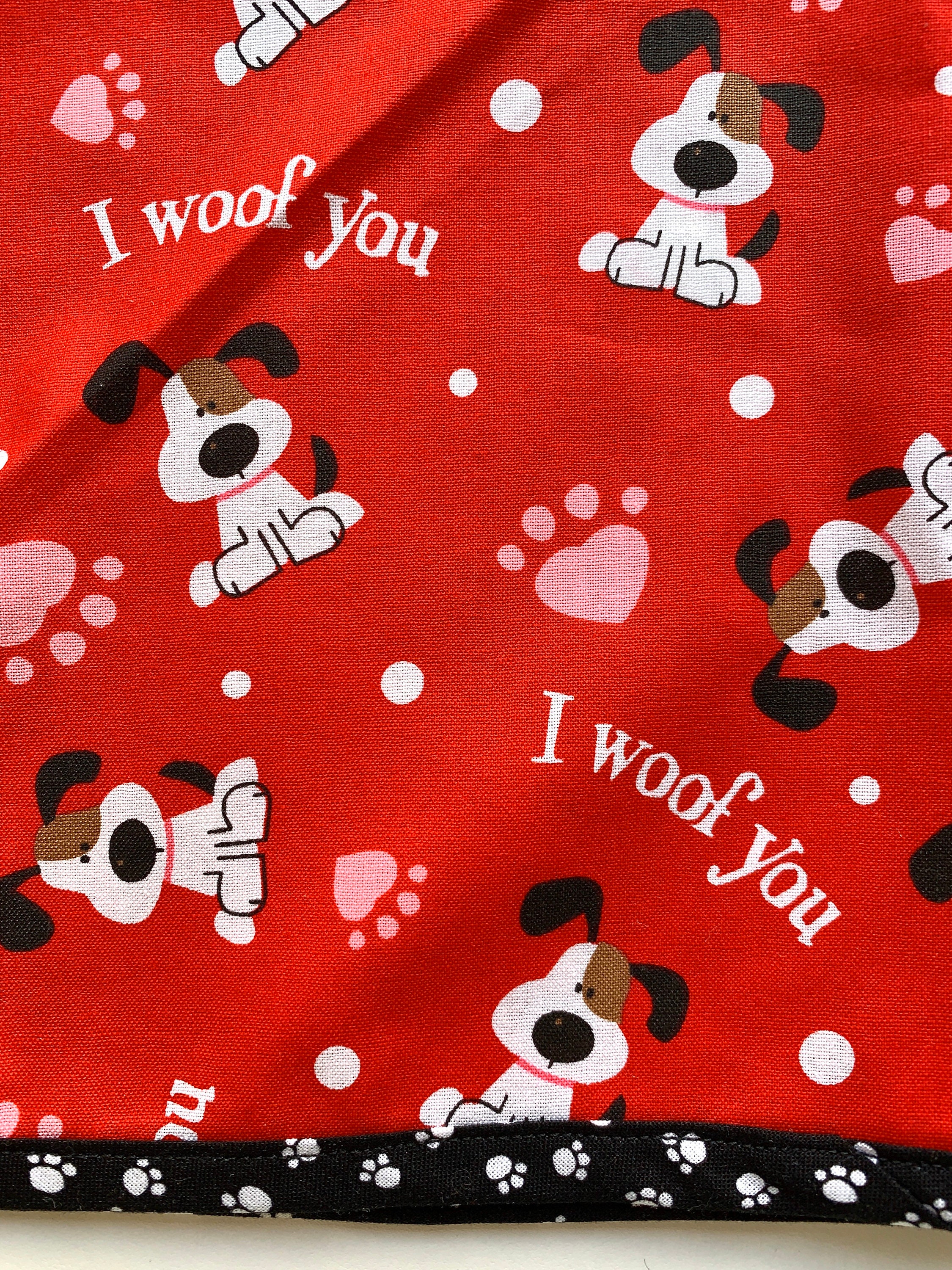 I am happy to say that I have figured out a way to make a dog bandana for your pet that will last. Each bandana is hand cut and the bias tape that is sewn around the edge is hand made by me! I put a ton of love and care into each of these unique cotton bandanas.