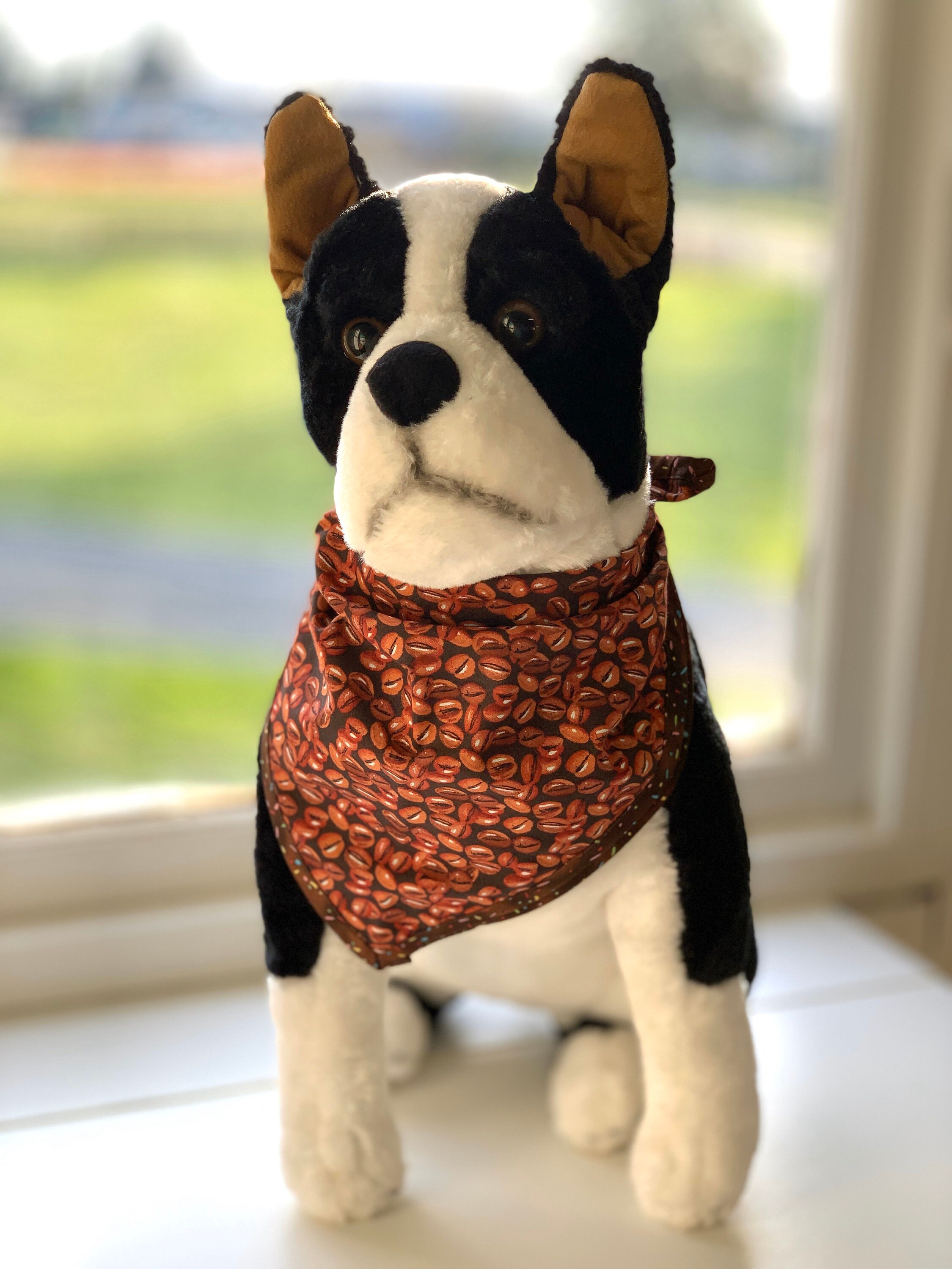 Are you looking for that perfect gift for you pet? I was too, and I couldn't find the quality that would go the distance. As an owner of a large breed dog, who drools ALOT, I wanted something that would stand the test of time, and look good too. I ordered a dog bandana online, and I could see that the surged edge just wasn't going to do it for me or for Hubert. I had just paid 20 dollars for a piece of cotton fabric with a surged edge.