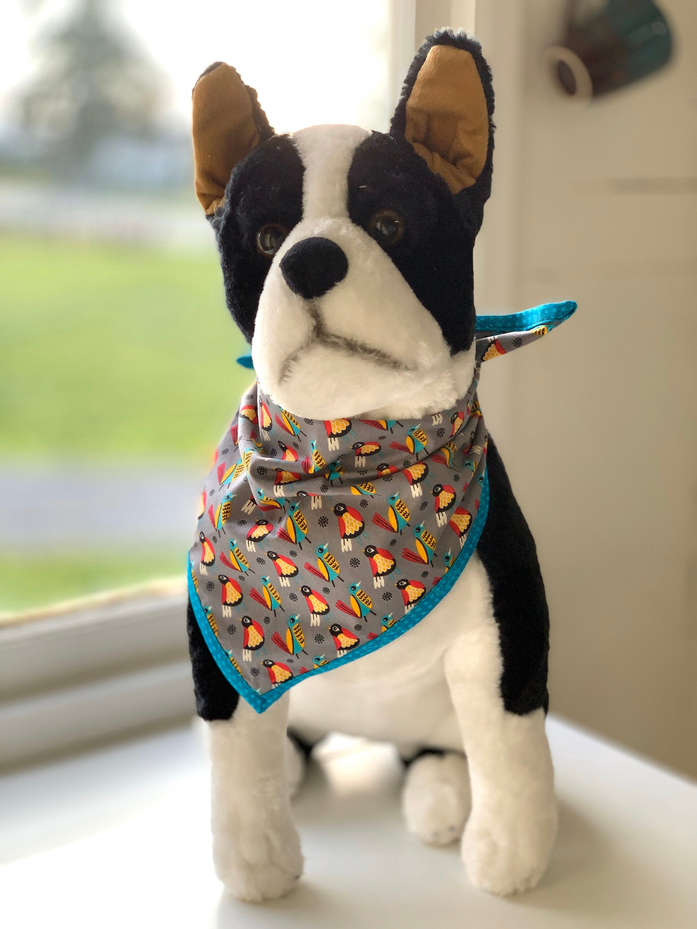 Are you looking for that perfect gift for you pet? I was too, and I couldn't find the quality that would go the distance. As an owner of a large breed dog, who drools ALOT, I wanted something that would stand the test of time, and look good too. I ordered a dog bandana online, and I could see that the surged edge just wasn't going to do it for me or for Hubert. I had just paid 20 dollars for a piece of cotton fabric with a surged edge.