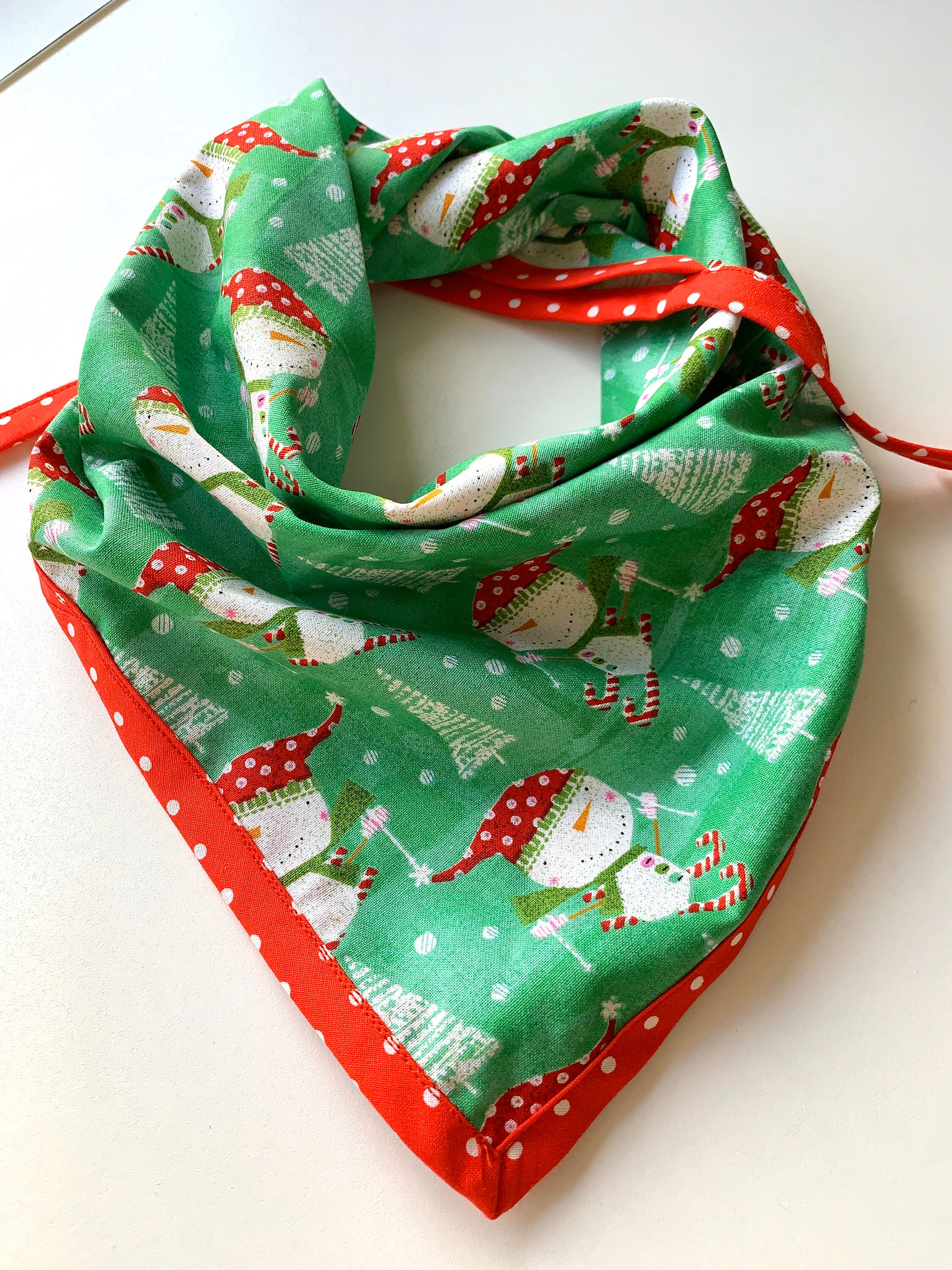 I am happy to say that I have figured out a way to make a dog bandana for your pet that will last. Each bandana is hand cut and the bias tape that is sewn around the edge is hand made by me! I put a ton of love and care into each of these unique cotton bandanas.